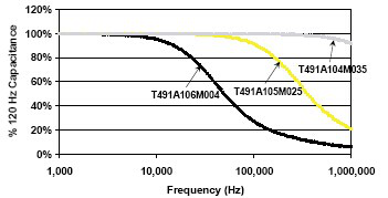 容值一般的測試條件:環(huán)境溫度:25度室溫下,頻率:120HZ,電壓:交流有效值最大1V或最大直流2.5V。一般來講,容值隨頻率增加而降低,隨溫度增加容量也會略有增加,因為固體鉭電容采用固體MnO2電解質,容量變化相對穩(wěn)定,在濾波應用時,容量變化基本可忽略。